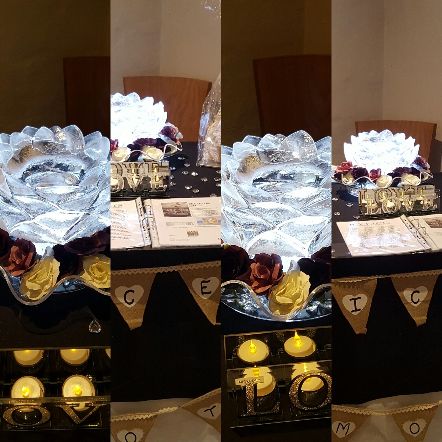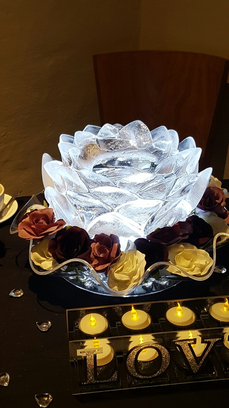 The Lotus is one of our most popular centre pieces it is truly beautiful, it can be lit in a selection of colours to go with any scheme. Also the colours you choose can have specific meanings so if you are interested please ask one of the ice agents when you call.