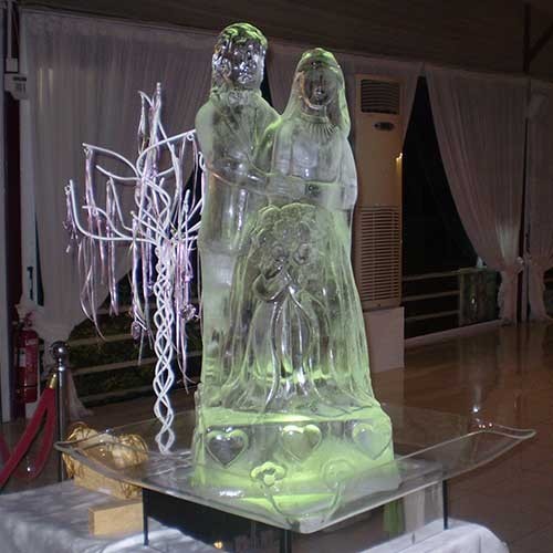The Happy Couple, is a stunning ice sculpture depicting a bride and groom in an embrace. This would make a fantastic display on entry to your reception or at the head table for all your guests to see.