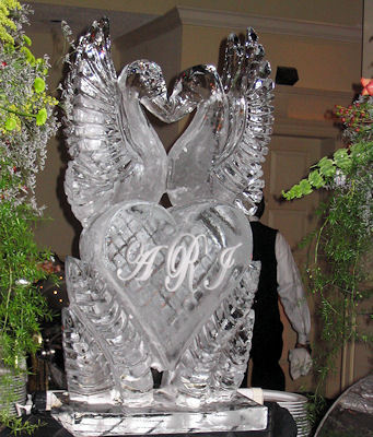The Love Birds Ice Sculpture can be personalised with your new initials as a married couple.